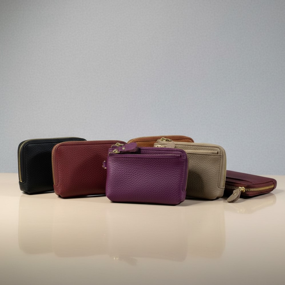 簡約俐落的設計搭配精緻壓紋皮革,是兼具時尚與實用的日常小包。擁有主拉鍊層與前袋設計,可同時收納卡片、零錢與鑰匙。六款經典色選:黑、棕、酒紅、米灰、深藍、紫紅,滿足不同風格搭配。